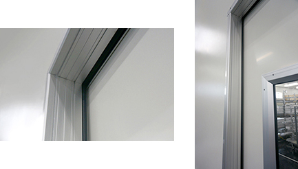 枠と扉本体を密着させるためのパッキンホルダー、通称「ベロホルダー」を樹脂製 からアルミ製に変更することによって、コーナー部の精度向上を図りました。
