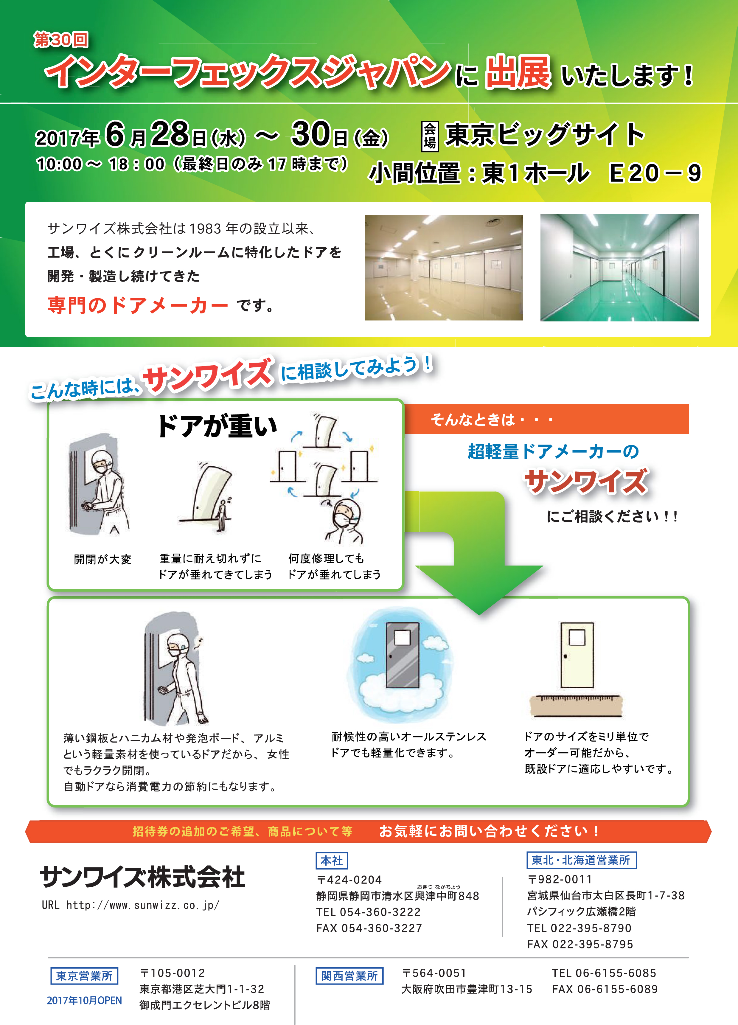 2017年6月28日(水)~6月30日(金)の3日間、東京ビッグサイトにて開催される「第30回インターフェックスジャパン」に出展します。